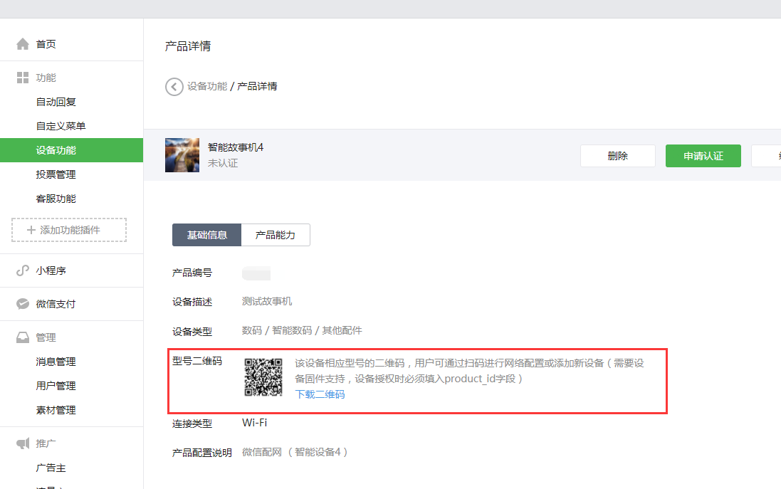 产品二维码,用户可以通过扫描二维码进行联网绑定操作,如下图: